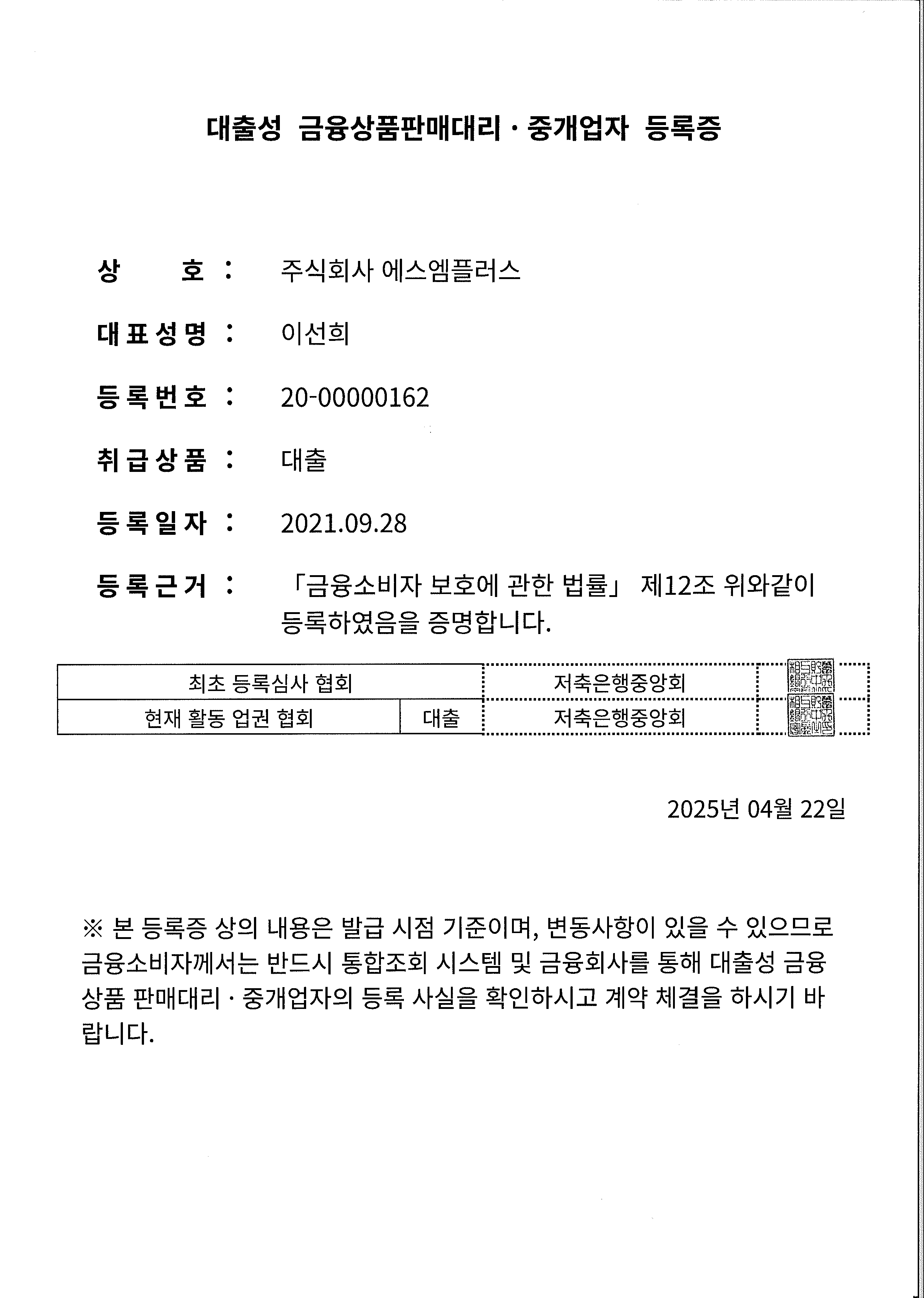 (주)에스엠플러스는 웰컴저축은행 대출모집위탁계약을 체결한 대출모집법인입니다.